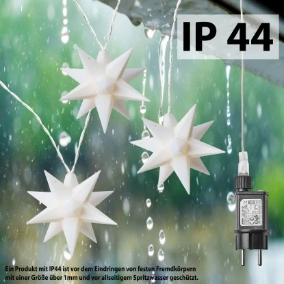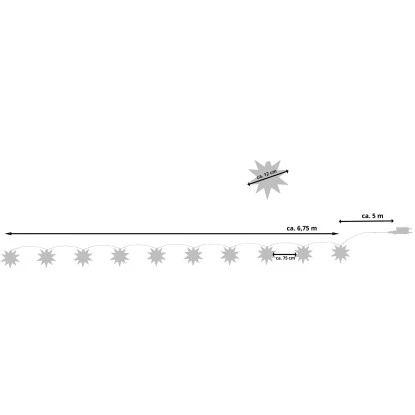 Die Amare LED-Sternenlichterkette 10-flammig Weiß Ø 12 cm verfügt über eine 6h Timer- Funktion kann aber auch dauerbetrieben werden. Die Sternenlichterkette sorgt für ein stimmungsvolles Ambiente, ob im Wohnzimmer, Wintergarten, Terrasse oder an der Außenfassade. Sie lässt ihre Umgebung zauberhaft erstrahlen und sorgt für strahlende Augen bei Groß und Klein.
