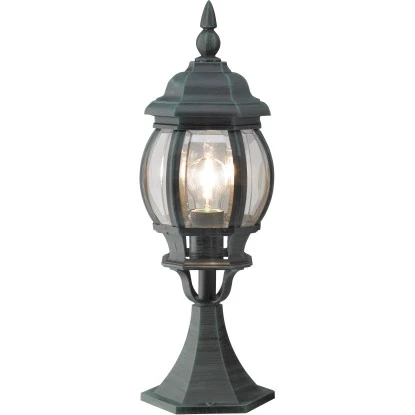 Die klassische Außensockelleuchte Soresina ist die optimale Lichtquelle in Ihrem Außenbereich. Das Design schafft ein rustikales und altertümliches Ambiente. Die großflächigen Glasscheiben sorgen für eine gleichmäßige Beleuchtung. Durch die Verwendung qualitativ hochwertiger Materialien ist sie weitestgehend witterungsunabhängig. Die Leuchte ist gegen kleine Fremdkörper und Spritzwasser aus allen Richtungen geschützt (IP 44). Das passende Leuchtmittel ist separat erhältlich. Für ein einheitliches Bild im Garten empfehlen wir aus der Serie Soresina auch die Wege- und Außenwandleuchten.