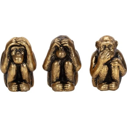 Dieses Set bestehend aus 3 Affen aus der Kollektion Dark Wonder wird Deine vier Wände mit seinem tropischen Flair beleben und ist ein besonderes Deko-Highlight. Das detailreich gestaltetes Design in den Farben Gold und Schwarz ist hochwertig, sodass es auf der Fensterbank, Anrichte oder Kommode ein echter Hingucker ist. Es besteht aus Polyresin und jeder Affe ist 8,5 cm x 8,5 cm x 12,5 cm groß.