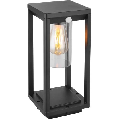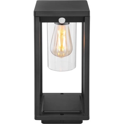 Diese Außenlampe aus der Candela-Serie ist eine wunderschöne Ergänzung für Ihren Garten, Ihre Terrasse oder Ihren Balkon. Die 35 cm große Außenleuchte besteht aus einen quaderförmigen, schwarz-matten Aluminium-Druckgussrahmen (15,5 cm x 15 cm), welcher innen mit einer E27-Fassung versehen ist. Diese wird von einem klaren Kunststoffzylinder umrahmt und kann mit einem passenden LED-Leuchtmittel Ihrer Wahl bestückt werden. Dadurch haben Sie die Möglichkeit, Lichtfarbe und Helligkeit individuell zu bestimmen. Außerdem verfügt die Außenleuchte über einen inkludierten Bewegungsmelder. Durch weitere Modelle der gleichen Serie können Sie in Ihren Außenbereich für ein stimmungsvolles Ambiente sorgen.