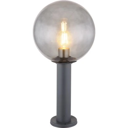Die Sockelleuchte aus der Hedwig-Serie von Globo mit einer Abmessung von Ø 25 cm überzeugt durch ihr schlichtes Design aus anthrazitfarbenem Aluminium-Druckguss. Die 50 cm große Außenleuchte kann durch ihren schlichten Sockel wunderbar auf ebenen Untergründen fixiert werden. Außerdem verfügt sie über eine rauchige Glaskugel, welche die E27-Fassung der Leuchte bedeckt. Die können Sie mit einem passenden LED-Leuchtmittel Ihrer Wahl bestücken, wodurch Sie die Möglichkeit haben, Lichtfarbe und Helligkeit individuell zu bestimmen. Durch weitere Artikel der gleichen Serie können Sie das Gesamtbild in Ihrem Außenbereich komplettieren.