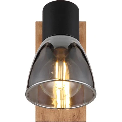 Dieser schöne Strahler der Claude Serie in schwarzen Metall und Holz begeistert durch tolles Design. An einer rechteckigen Wandbefestigung mit Holzverzierungen (14×7 cm) befindet sich mit einem Überhang von 15,5 cm eine E14 Fassung mit einem schönen Glasschirm in Rauchfarben (Ø7 cm). Geschaltet wird die Leuchte mittels ON/OFF Schalter. Die E14 Fassung überlässt Ihnen die Möglichkeit, bis zu einer maximalen Leistung von 40 Watt, selbst über Lichtfarbe und Helligkeit zu bestimmen. Mit weiteren Modellen dieser Serie können Sie Ihren Wohnbereich wundervoll ergänzen.