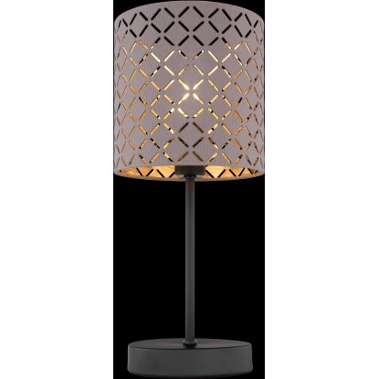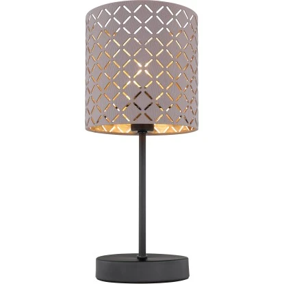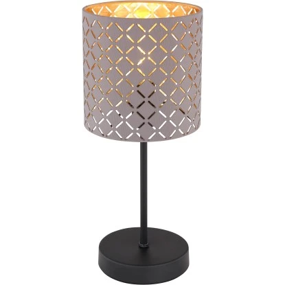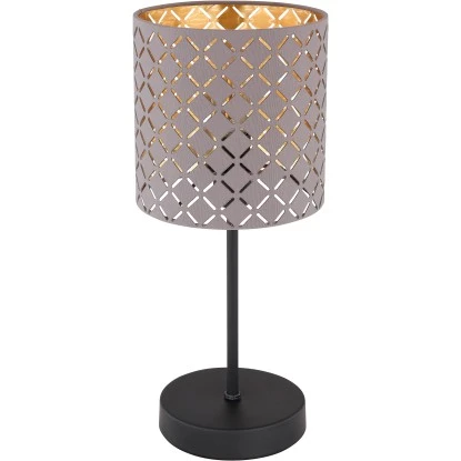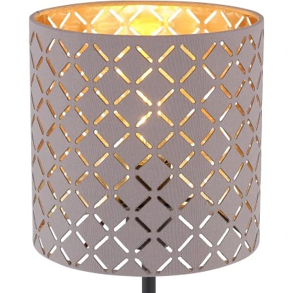 Die Tischlampe aus der Cindy-Serie von Globo mit einem Durchmesser von 15 cm kann Ihre Innenräume um eine elegante Lichtquelle erweitern. Die 35 cm große Tischleuchte besteht aus einem runden, schwarz-matten Metallsockel, an dem ein Metallstab fixiert ist. Dier ist mit einem zylinderförmigen, grauen Textilschirm mit gitterförmigen Stanzungen versehen, welcher mit einem E27-Leuchtmittel Ihrer Wahl bestückt werden kann. Dadurch haben Sie die Möglichkeit, Lichtfarbe und Helligkeit individuell zu bestimmen. Außerdem ist die Leuchte mit einem inkludierten Schalter ausgestattet, mit dem sie bequem ein- und ausgeschaltet werden kann. Durch weitere Modelle der gleichen Serie können Sie das Gesamtbild in Ihren vier Wänden komplettieren.