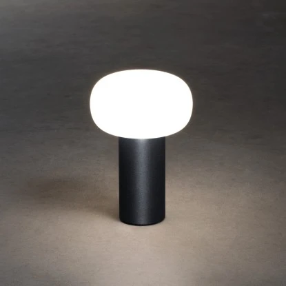 Die schwarze USB-Tischleuchte Antibes von Konstsmide hat eine Größe von ø 13 cm x 19 cm und verfügt über einen 4400 mA leistungsstarken Lithium-Ionen-Akku. Sie verfügt über IP 54 Strahlwasserschutz und ist aus hochwertigem Aluminium gefertigt. Damit trotzen sie dauerhaft Wind und Wetter.