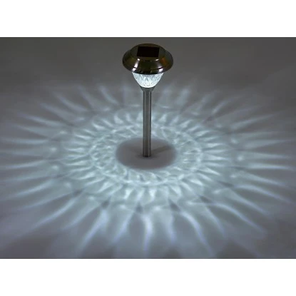 Der LED-Solarspieß Villore mit einem Maß von 51,7 cm x 14,8 cm inklusive Erdspieß schmückt Ihren heimischen Garten oder Balkon und bietet einen echten Blickfang. Die besondere Struktur des Materials im Spießkopf erzeugt schöne Lichteffekte, die für eine stimmungsvolle Atmosphäre in Ihrem Außenbereich sorgen. Der aus Edelstahl und Kunststoff gefertigte Solarspieß ist mit einer weißen 0,5 W LED ausgestattet. Nach vollständigem Aufladen der Batterie leuchtet der Solarspieß bis zu 8 Stunden. Nach IP Schutzklasse 44 ist er bestens gegen Spritzwasser geschützt.