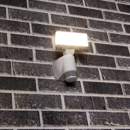 – Design und Technik: Die Außenleuchte hat ein modernes Design mit kompakten Abmessungen. Das Gehäuse in zeitlosem Weiß ist witterungsbeständig und spritzwassergeschützt (IP44)