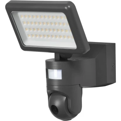 Die Ledvance LED-Außenleuchte Smart+ Flood Camera Control Dunkelgrau besteht aus einem Fluter mit integrierter, per app ausrichtbarer Kamera, Fernsprecheinrichtung, Bewegungs- und Tageslichtsensor. Sie ist steuerbar über Ledvance Smart+ WiFi App (mit mindestens Android 4.4 oder iOS 10.0), dimmbar und hat eine Farbtemperatur von 3.000 K (Warm White). Zudem besitzt sie einen einstellbaren Kopf. Dank der Schutzart IP44 ist die Lampe für die Beleuchtung von Garagen und Eingangsbereichen geeignet. Die Kamera liefert eine HD Live Bild Übertragung. Zudem verfügt die Lampe über eine eingebaute Fernsprecheinrichtung und eine Alarm-Funktion.
