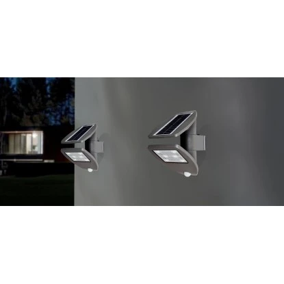 Die moderne Außenwandleuchte Zeta überzeugt durch modernes Design und hohe Funktionalität. Sie ist drehbar, so dass Panel und Licht unterschiedlich ausgerichtet sein können und ermöglicht Ihnen so die individuelle Einstellung des Solarmoduls. Dadurch haben Sie je nach Jahreszeit immer die Möglichkeit die perfekte Menge Sonne einzufangen. In Kombination mit dem PIR-Bewegungsmelder ist sie die ideale Leuchte für jeden Außenbereich.