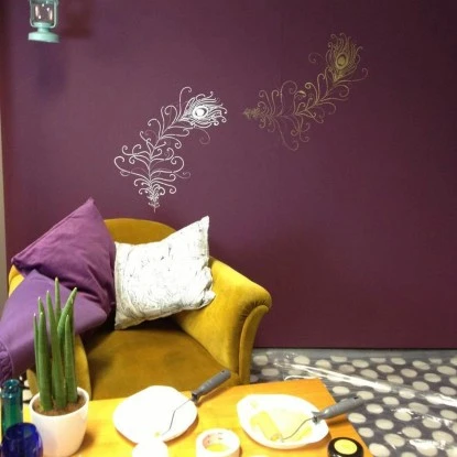 Wände, Möbel und Textilien erhalten einen neuen Look mit der Marabu Schablone 40 cm x 66 cm Peacock Feather.