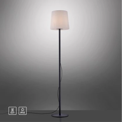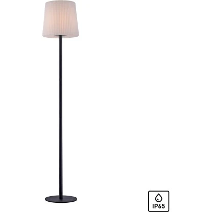 Ob im Innenbereich oder im gemütlichen Außenbereich auf Terrasse und Balkon – die Stehleuchte Falter passt in jede Umgebung. Dank ihres 2 m langen Kabels ist sie flexibel genug, um dekorativ auf Ihrer Outdoorfläche die Abendstunden zu erhellen. Dafür benötigen Sie lediglich eine Außensteckdose in der Nähe. Der Leuchtenschirm sorgt für eine gleichmäßige Lichtverteilung, indem er den Lichtschein sanft und indirekt an die Umgebung abgibt. Mit der Schutzklasse IP65 ist die Outdoorleuchte hervorragend für die Verwendung im Freien geeignet. Die Leuchte ist mit einem E27 Leuchtmittel mit max. 25 Watt zu bestücken. Die Stehlampe hat einen Durchmesser von 28 cm und eine Höhe von 150 cm.