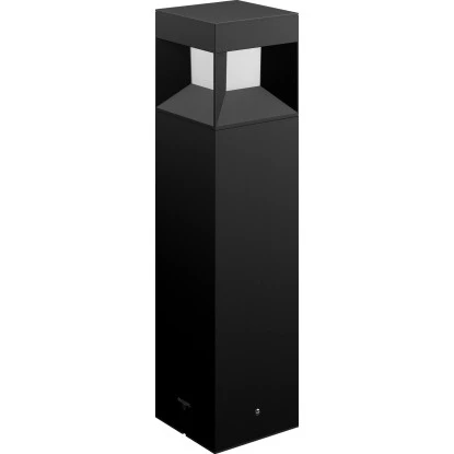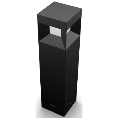 Die schwarze Philips Parterre LED-Sockelleuchte für den Außenbereich bringt einen Lichtwürfel in einem widerstandsfähigen Gehäuse aus Aluminium-Druckguss zum Schweben. Das geniale Design richtet gestreute, warmweiße Lichtstrahlen auf Gehwege und offene Außenbereiche.