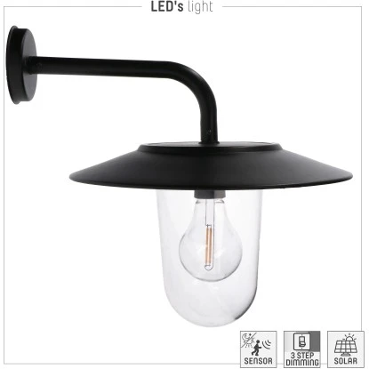 Die Solar-Wandleuchte Lagos 300 lm 2200 – 2700K IP44 Schwarz ist die ideale Lichtquelle für eine Vielzahl von Anwendungen, da sie keinen Stromanschluss benötigt. Perfekt für Schuppen, Zäune und neben der Haustür. Die Leuchte wird tagsüber von der Sonne aufgeladen und verfügt über einen Tageslichtsensor und einen Bewegungssensor. Der Tageslichtsensor kann auf folgende Werte eingestellt werden: