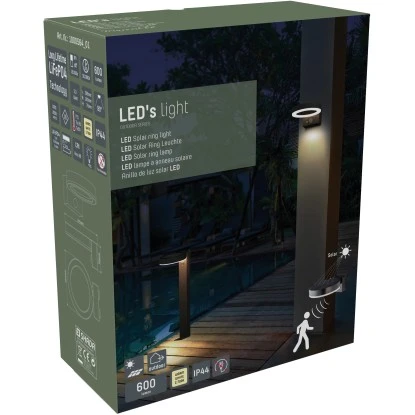 Die Solar-Wandleuchte Marseille 6 W 600 lm 2700 K IP44 Sensor Schwarz ist eine schöne Wandleuchte mit Solarenergie für perfekte Außenbeleuchtung. Mit einer Helligkeit von 600 Lumen und einer schönen warmweißen Farbe (2700 K). Diese Außenleuchte kann komplett kabellos installiert werden. Die Lampe hat einen Sensor und kann in 3 verschiedenen Positionen eingestellt werden: