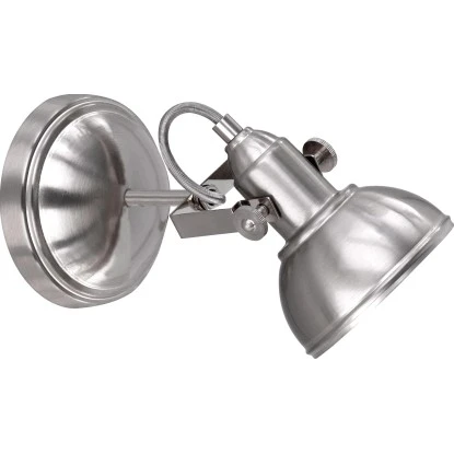 Der 1er Spot aus der Serie Gina überzeugt durch seinen Industrial-Look. Der Spot ist aus Metall in matter Nickeloptik gefertigt und ist schwenkbar. So kann er ganz nach Ihren Wünschen besondere Bereiche in Ihren Räumen leuchtend hervorheben. Besonders praktisch: Ausgestattet mit einer E14 Fassung für maximal 40 W können Glühlampen, Sparlampen oder LED-Leuchtmittel eingesetzt werden.