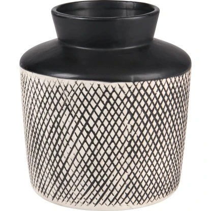 Diese Vase aus der Kollektion Minimalist Zen ist ein Blickfang im Innenbereich und setzt tolle Akzente auf dem Tisch, im Regal und der Fensterbank. Geeignet ist sie zur Innendekoration mit Schnittblumen und Blumensträußen. Qualitativ überzeugt das Wohnaccessoire durch die Fertigung aus pflegeleichter und strapazierfähiger Keramik. Mit ihrem Design in der Farbe Schwarz fügt sie sich in jede Einrichtung ein. Ihr Ø misst 16,5 cm bei einer Höhe von 18,4 cm.